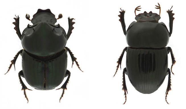 Figura 5. Izquierda: Onthophagus curvicornis. Derecha: Uroxys coarctatus. Crédito de la fotografía: